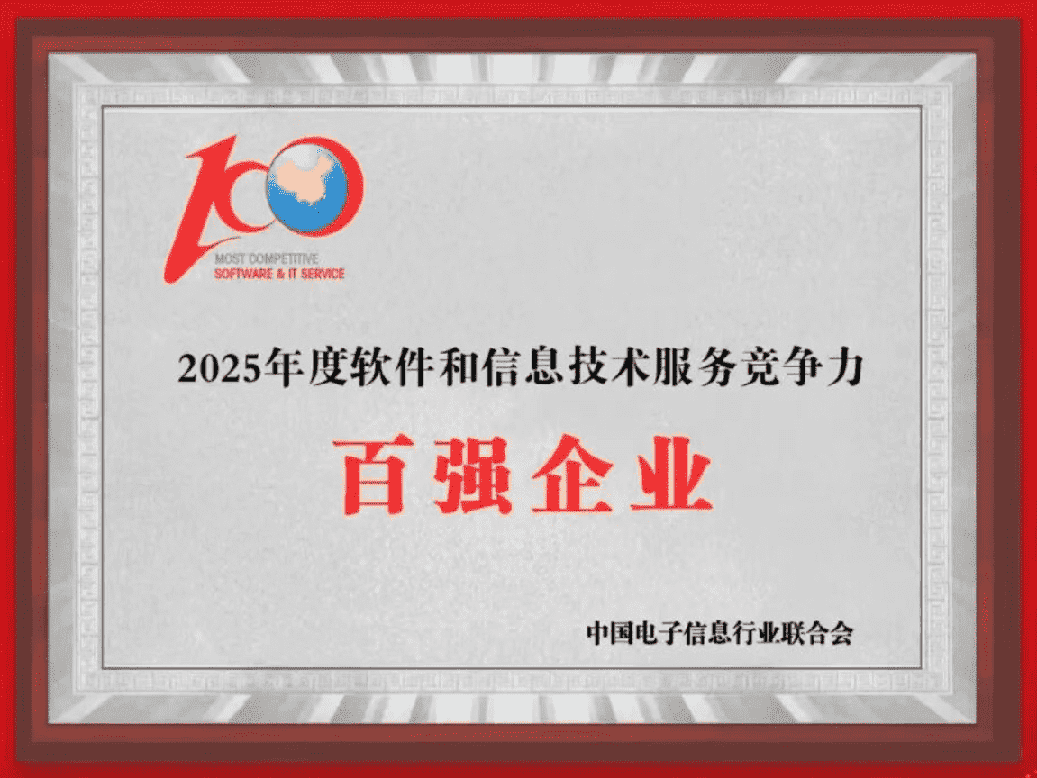 20251015日,,,中国电子信息行业联合会权威揭晓“2025年度软件和信息技术服务竞争力前百家企业名单。。。中国软件百强企业评选活动是由工业和信息化部全程指导、、、、中国电子信息行业联合会牵头组织发起,,,是反映中国软件产业发展最高水平的“风向标”。。厦门35273网络技术股份有限公司(以下简称“35273”或“公司”)凭借自身在软件技术领域的卓越表现与杰出创新能力,,,,第六次入选“全国软件和信息技术服务竞争力前百家企业”称号。。