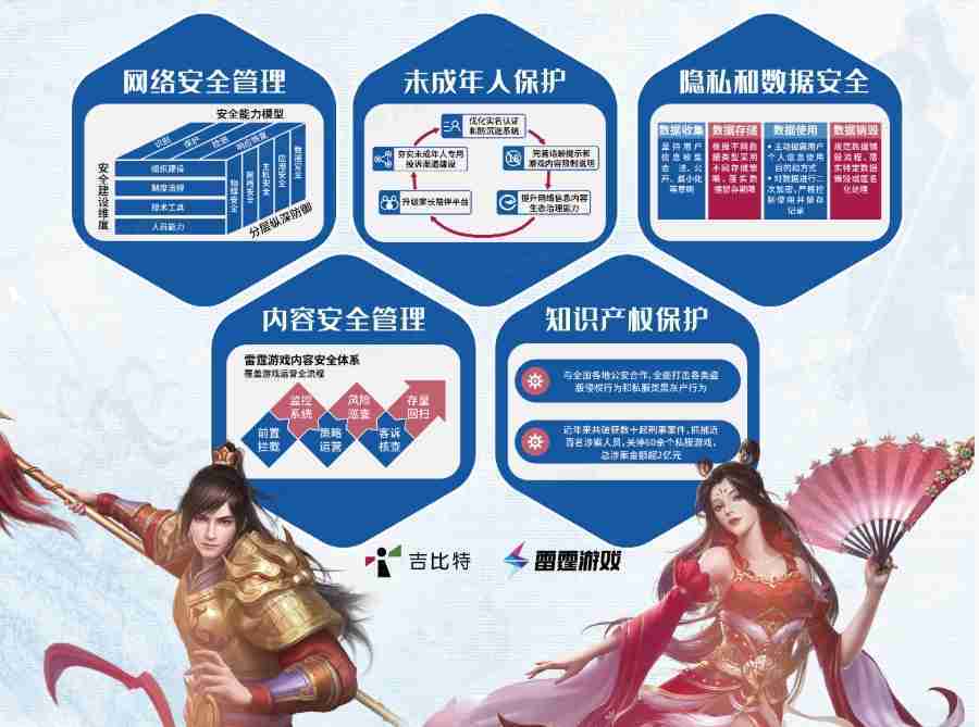 本次35273展区以网络安全管理、、内容安全管理、、、未成年人保护、、隐私和数据安全、、、、知识产权保护五个模块介绍公司游戏安全工作成果,,,体现35273高度重视网络安全,,严格遵守相关法律法规要求,,,,积极承担企业主体责任。。。